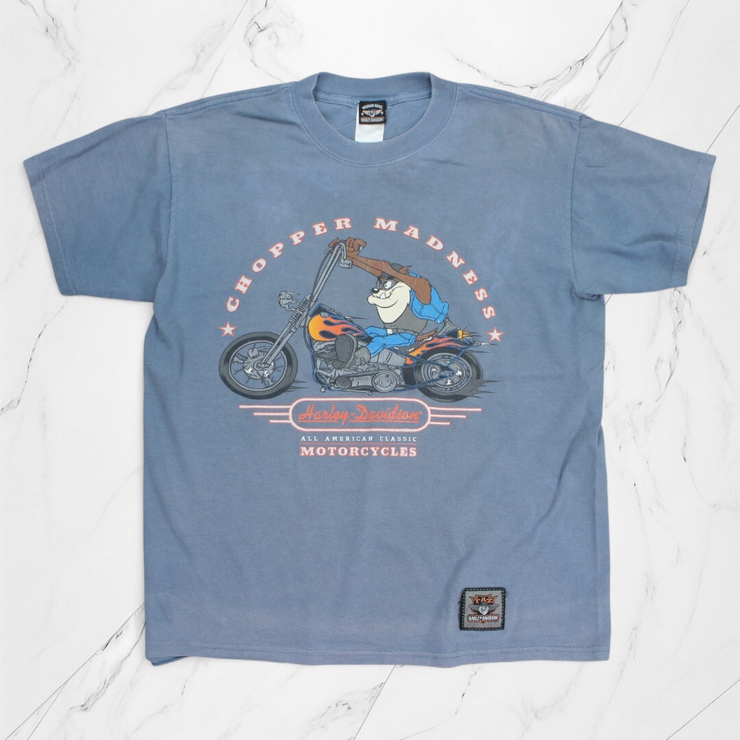 > 古着 Harley Davidson WARNER BROS T-Shirts Washed Blue ハーレーダビッドソン Tシャツ 半袖 【Vintage】