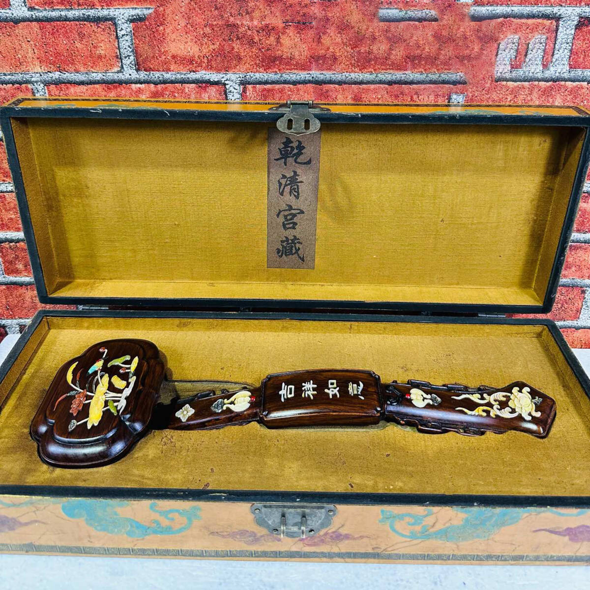 > 8+GV6574「東洋美術」 人間国宝 中国骨董 木製 工芸品 木彫り 時代物 賞物 【清朝の黄花利如意】 書道具 文房具 収蔵価値が高い