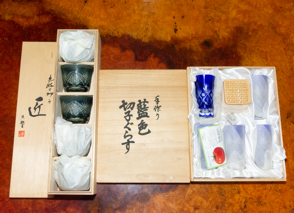 - 色被せ切子 匠 手作り藍色切子グラス コースター付 各5客 ビアグラス ぐい呑み 冷茶 冷酒