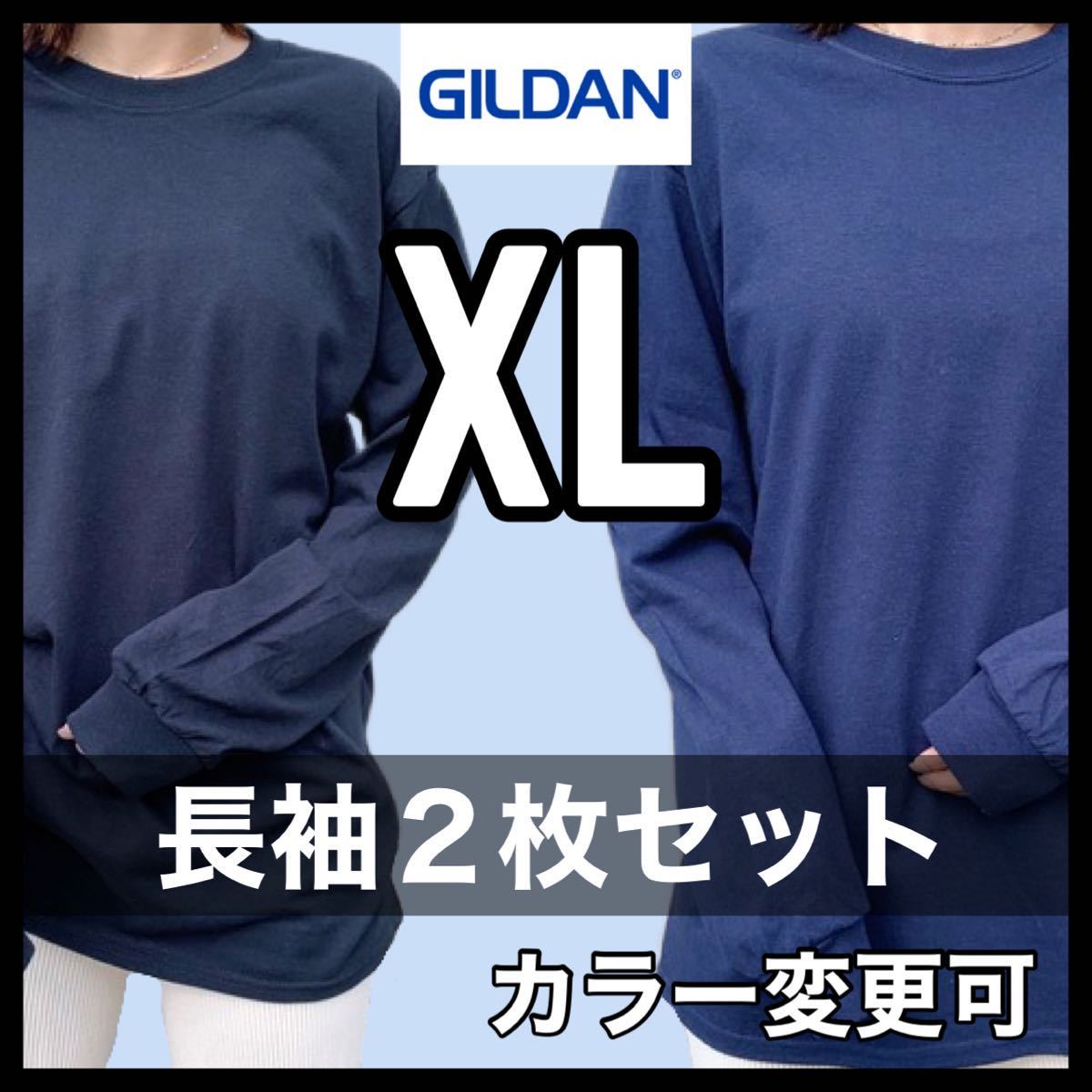 - 新品未使用 ギルダン 6oz ウルトラコットン 無地 長袖Tシャツ ロンT 黒 ブラック ネイビー 2枚セット XLサイズ ユニセックス GILDAN