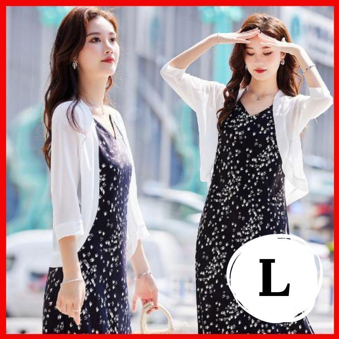 - カーディガン ボレロ フォーマル シフォン ボレロ ショート丈 L ホワイト