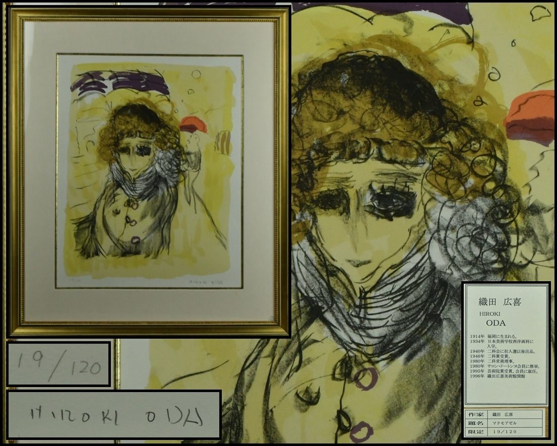 > 【NNK】芸術院会員【織田広喜】リトグラフ『マドモアゼル』19/120 人物画 絵画 額装 壁掛 高さ78.5cm D7-812-5