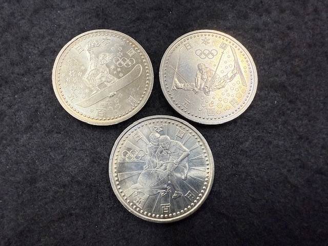 - 32、記念硬貨 長野オリンピック 500円 白銅貨 3種 スノボ・ボブスレー・フリー