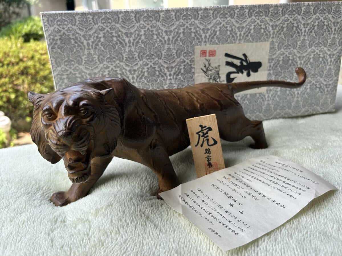 > 虎 とら トラ 伝統美術工芸品 美術鋳物工芸 瑞峰作 瑞峰謹言 インテリア コレクション 美術品 金属製重さ 約3.5㎏(磁石つきます)管理827-31