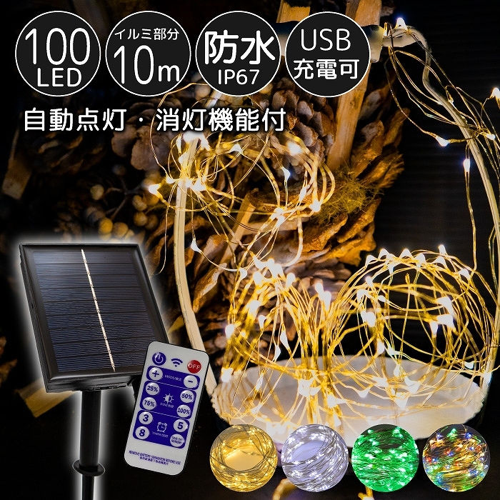 > 【グリーン】 イルミネーション 屋外用 LED ジュエリー ライト リモコン ソーラー 100球 FJ3978-green