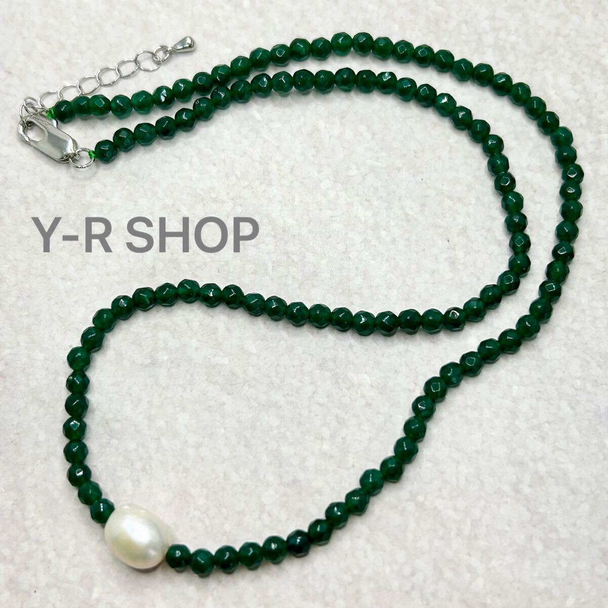 - 天然石★小粒クリアエメラルドと淡水パールのネックレス★レディースシルバーアクセサリーカラーストーンビーズ新品宝石Y-RSHOPプレゼント