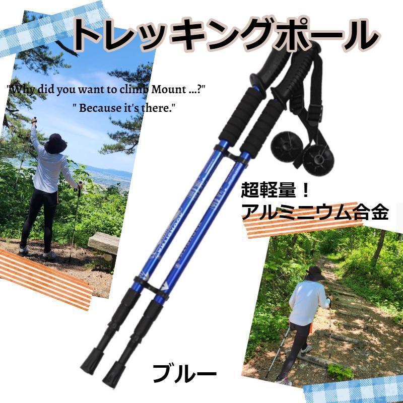 - ★値下げ★ 軽量 アルミ製 トレッキングポール 伸縮式 ブルー