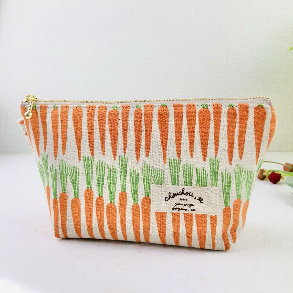- にんじん コスメポーチ ハンドメイド ポーチ ミニポケット付き 野菜辛い まち付きポーチ
