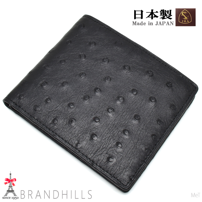- オーストリッチ 札入れ 二つ折り メンズ ブラック 無双 日本製 JRA 新品