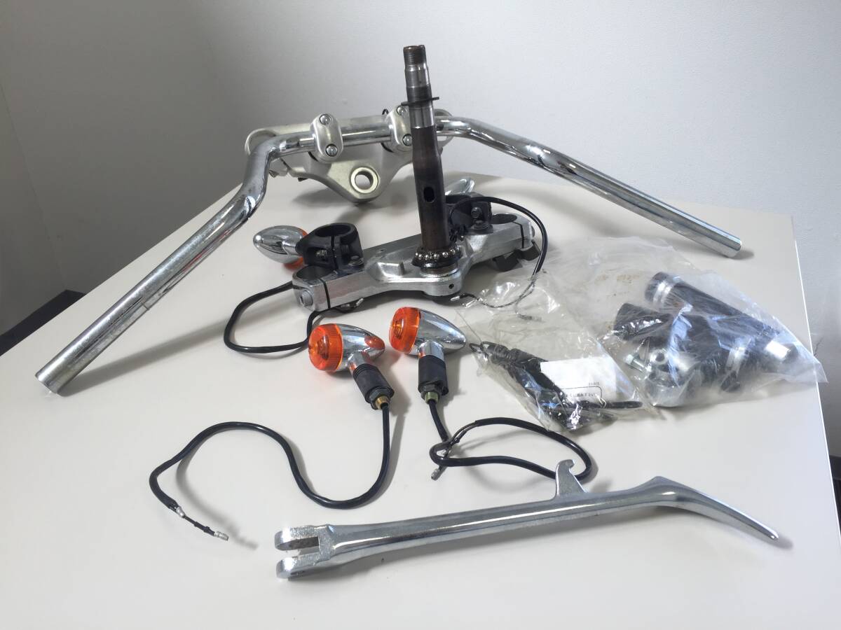 > □ バイク ハンドル&パーツまとめ売り 総重量約8.5kg 刻印4VR Y-4 ドラッグスター? 中古品 (NF250828)552-7