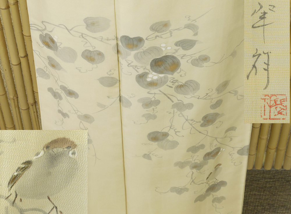 > 【京かんざし】t-400★作家物 落款有 特撰創作紬訪問着 躾糸付未着用身丈164 cm裄丈67 cm★即決送料無料!