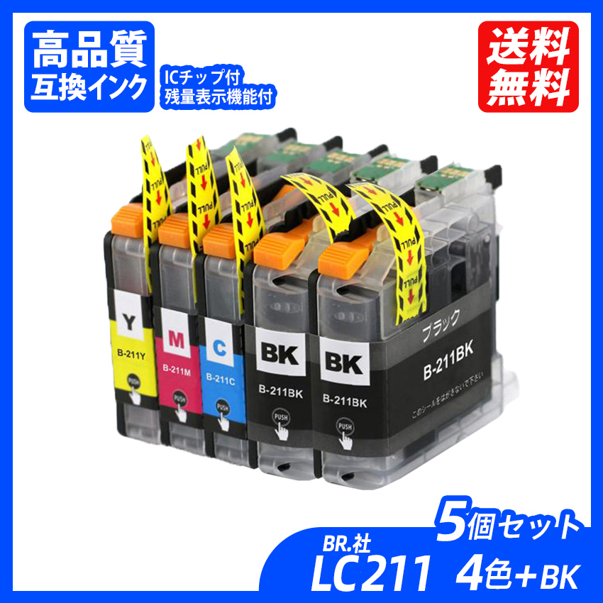 - LC211-4PK+LC211BK お得な4色パック+ブラック1本 計5本セット ブラック シアン マゼンタ イエロー BR社 プリンター用互換インク ;B11696;