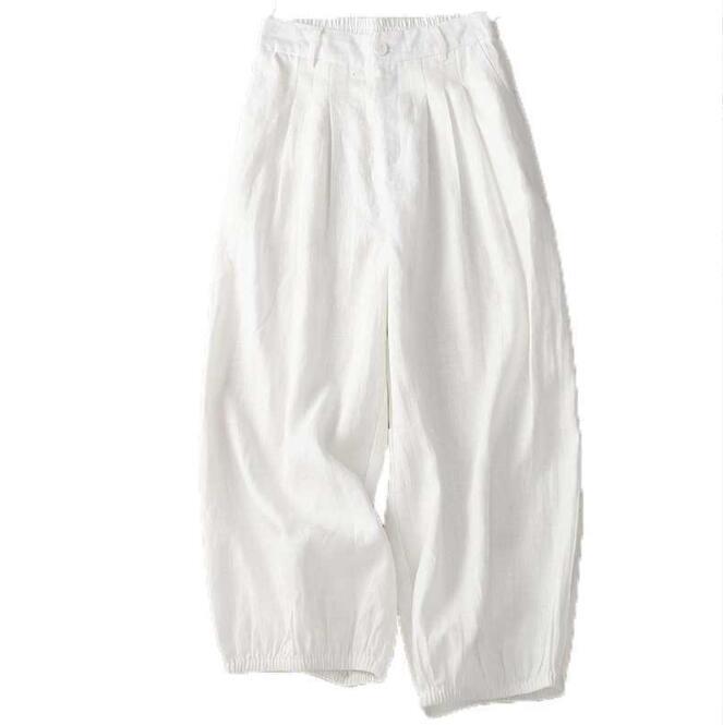 - 人気品新品上品 ワイドパンツ レディース リネンパンツ 綿麻 ガウチョパンツ ウエストゴム涼しい パンツ ボトムス ホワイト