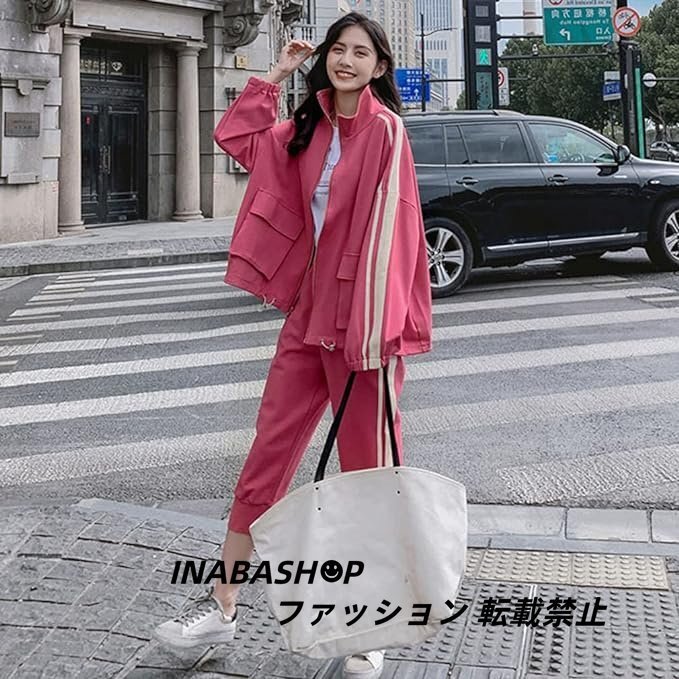 > 春秋 2点セット ジャージ セットアップ レディース パーカー スウェットパンツ ジップジャケット カジュアル スポーツ 韓国風 大きいサイズ
