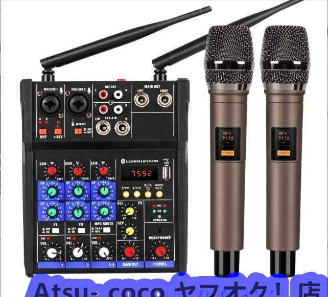 - ワイヤレスマイク付き4チャンネルオーディオミキサー★ミキシングコンソール★マイクロフォン付きです