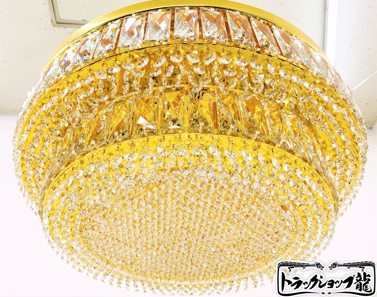 - 新品 Φ60cm 天吊りシャンデリア ケーキ型 円形 2段 フルゴールドメッキ クリスタルビーズ デコトラ トラック部品パーツ 車内照明 C0620S