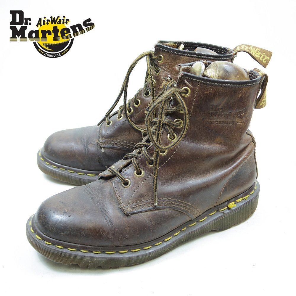 > UK6 25cm相当 Dr.Martens ドクターマーチン 8ホール イエローステッチ ブラウン 革靴 ワークブーツ /25.8.28/P3421