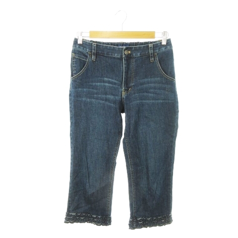> ピンクハウス PINK HOUSE デニムパンツ ジーンズ クロップド フリル ロゴ マーガレット 4 L 青 ブルー /MN21 レディース