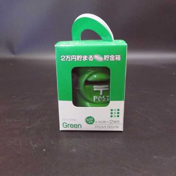 - U13 緑色貯金箱 箱付き 2万円貯まる貯金箱 昭和レトロ 陶器製 ポスト型 ポスト バンク 置物 オブジェ 貴重 当時物