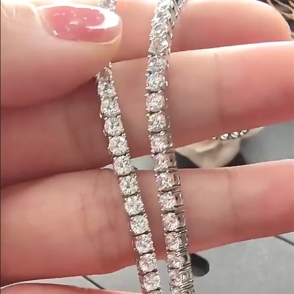 - 高級 925シルバー4mmフル高炭素ダイヤモンド5Aジルコンテニスネックレス、45cm、残り時間4日までに最初に入札すると開始価格で購入可能 Kn