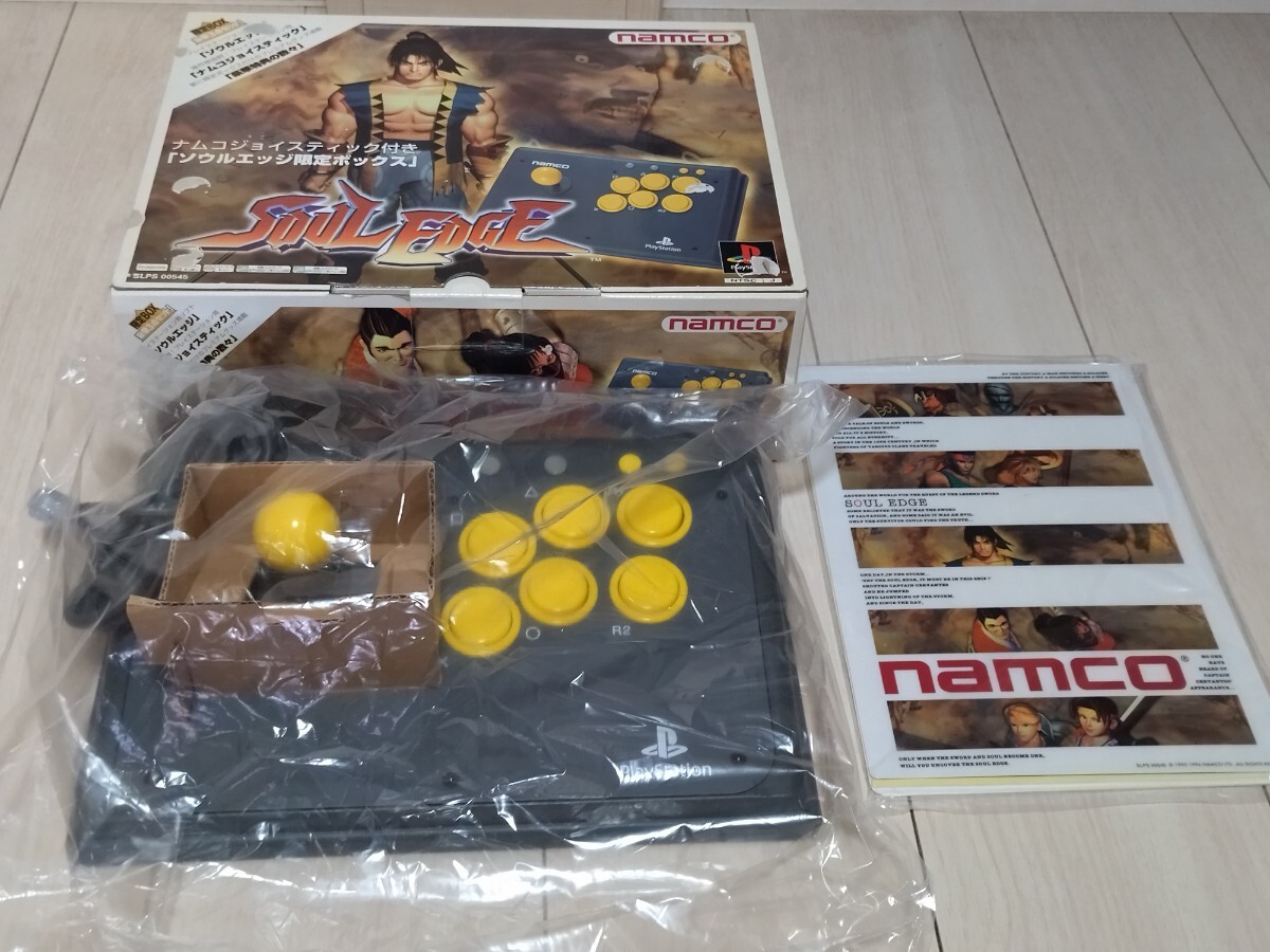 > 即決PS1PS2 状態良好 ナムコジョイスティック付 ソウルエッジ限定ボックス プレミアムグッズ 動作確認済 アーケードコントローラーアケコン