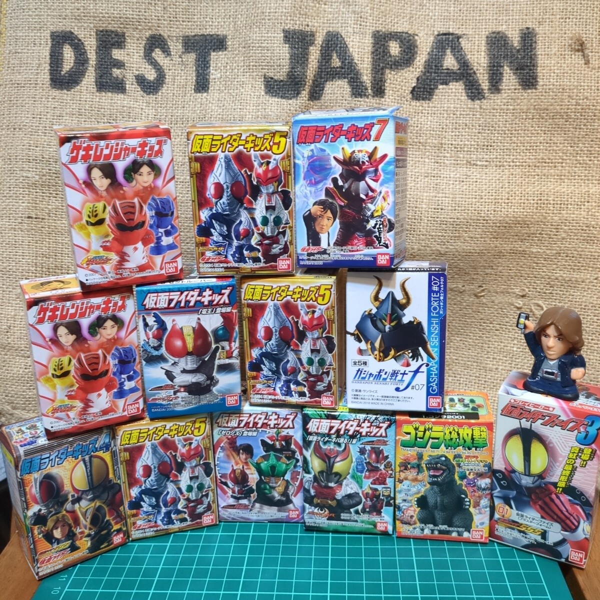 - 食玩 仮面ライダーキッズ ゲキレンジャーキッズ ゴジラ総攻撃 プレイヒーロー ガシャポン戦士f 14個セット 指人形 ソフビ まとめて
