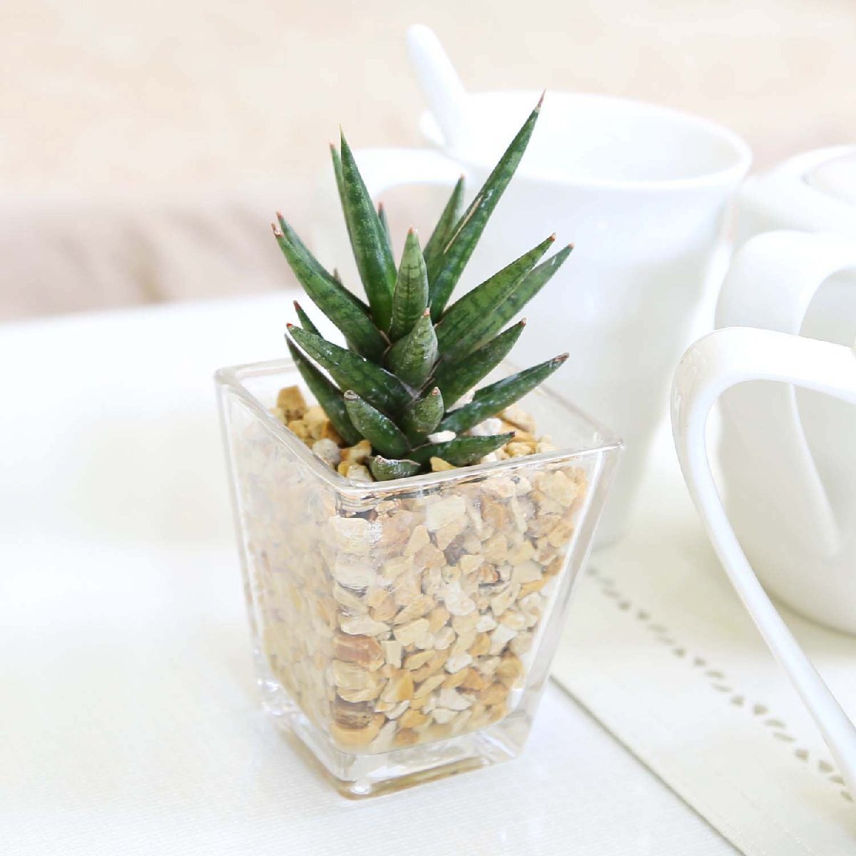 - 土を使わない観葉植物 ゼオライト植え・ガラス鉢 Aタイプ 2鉢セット |サンスベリア フランシーのみ