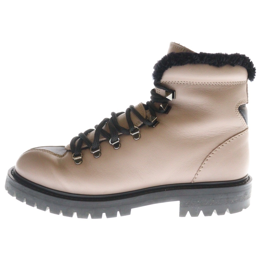 - VALENTINO ヴァレンティノ レースアップ レザームートンブーツ シューズ ピンク レディース