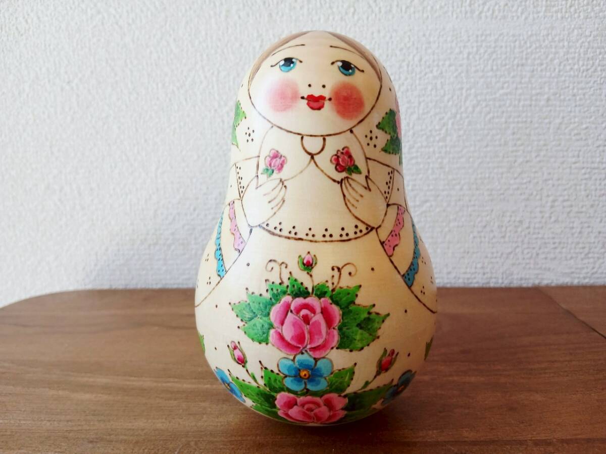 - 【LYH319】北欧ロシア雑貨 起き上がりこぼし(大) リューバ作 白木風