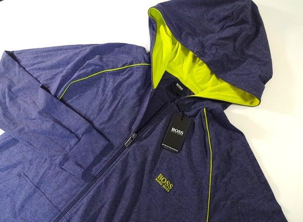> 新品未使用 HUGO BOSS ヒューゴボス 胸にBOSS刺繍 パーカ 薄手 L ネイビー インポートサイズ