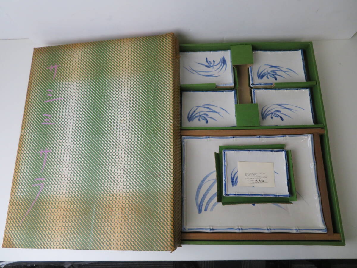 - ▽【未使用・保管品】刺身皿 角皿 TAMAGAWA-TOKI 光文堂 大皿1枚 幅約30.5cm & 小皿5枚 幅約14.5cm