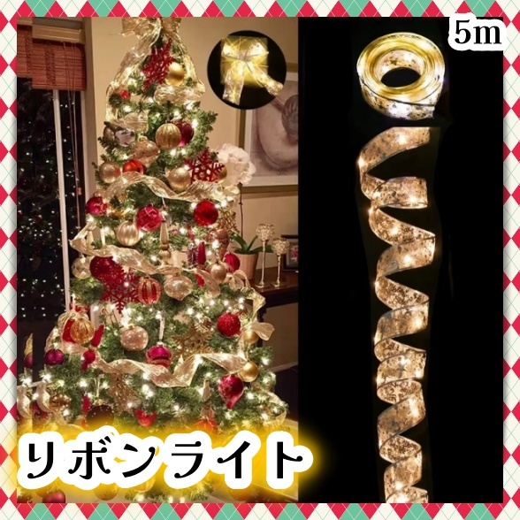 - 光る リボン LED イルミネーション ライト 5m 電池式 照明 電飾 学際 ヲタ活 推し活 バースデー イベント 飾り付け 誕生日 クリスマス DIY