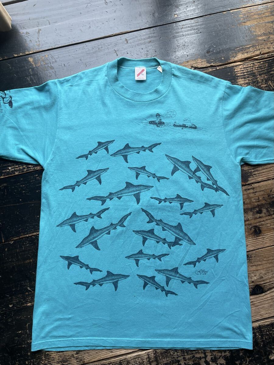 - 1980s 80s USA製 サメ 鮫 シャーク トルトラ島 ヴィンテージ 古着 Tシャツ プリント 80年代 カリブ海 レトロ XL デザイン