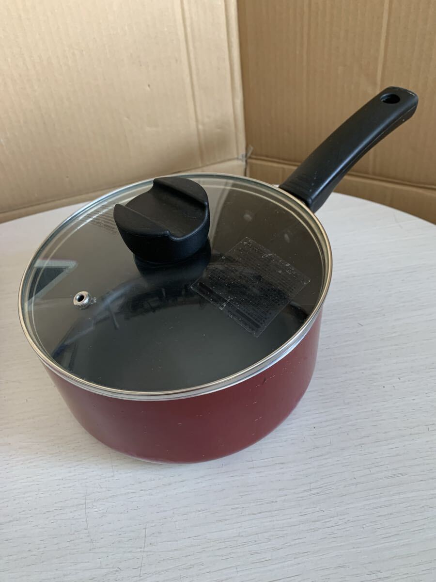 - 片手鍋 レッド ガラス蓋付き 調理器具
