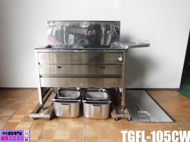 - 中古厨房 タニコー 業務用 2槽 スタンダード ガスフライヤー 涼厨 TGFL-105CW 都市ガス 23L×2 150~210℃ 圧電式 2020年製