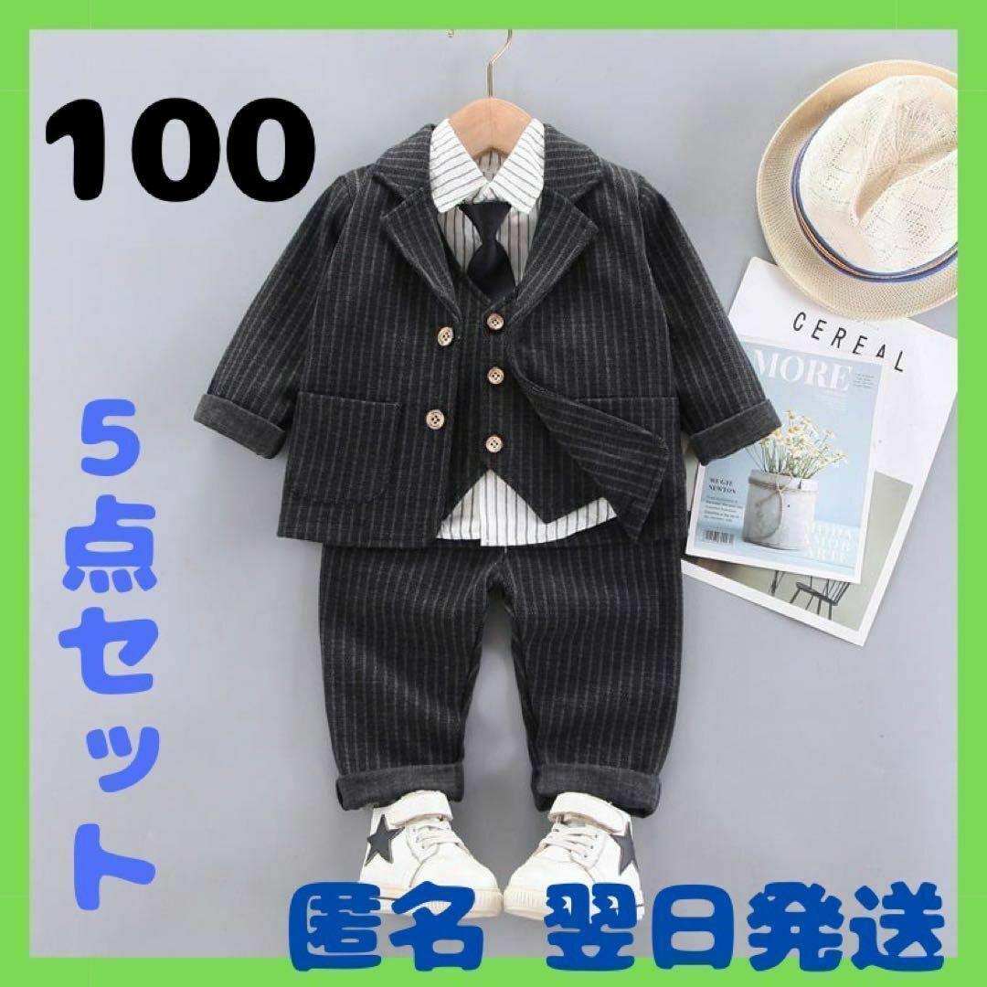 - 子供 スーツ 黒 5点 サイズ100 結婚式 誕生日パーティー お宮参り 入学式 セレモニー キッズ 男の子