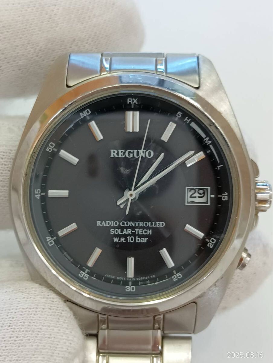 - 【中古品】CITIZEN シチズン レグノ デイト 電波ソーラー ブラック文字盤 メンズ 腕時計 現状品