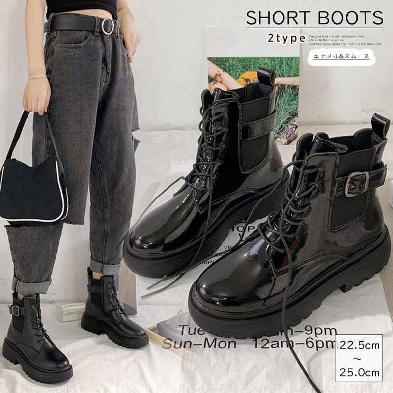 - 厚底 ショートブーツ サイドコアブーツ 25.0cm(40) ブラック