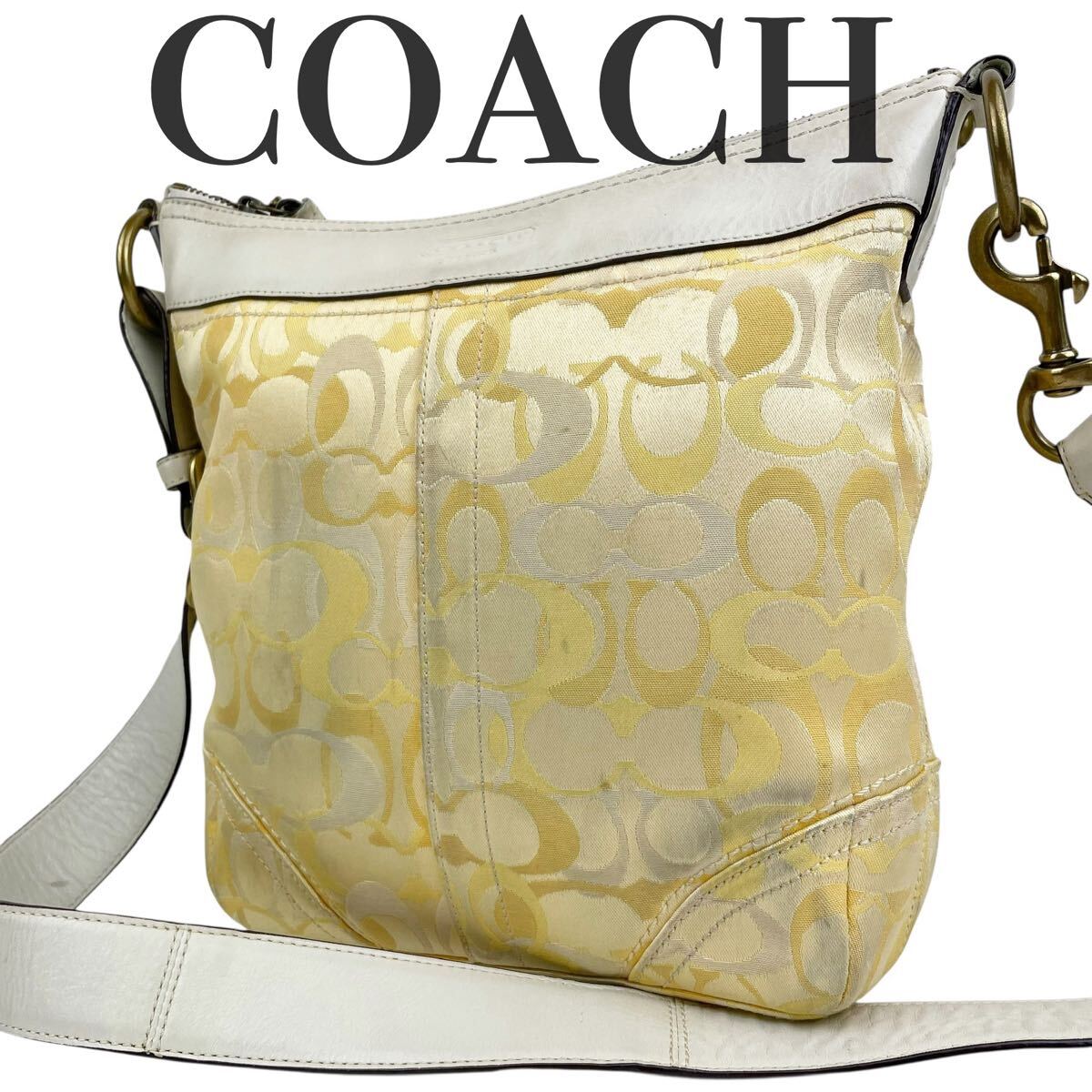 > 良品 希少色 coach コーチ ショルダーバッグ シグネチャー 黄色 ハンドバッグ トートバッグ 肩掛け 斜め掛け キャンバス