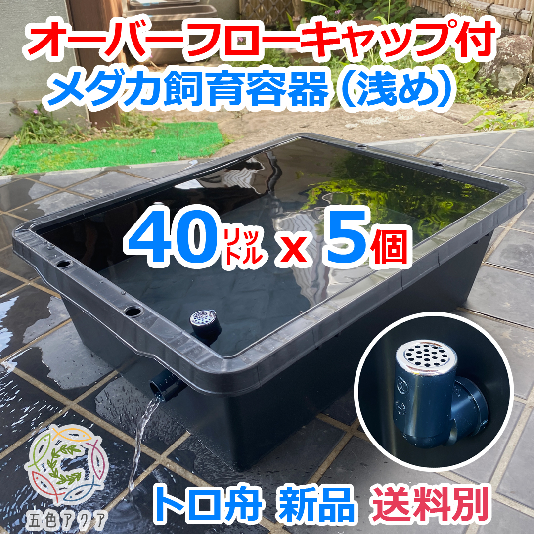 > 【新仕様】メダカ飼育ケース 40㍑トロ舟x5個 オーバーフロー加工済 めだか飼育容器 金魚鉢 小亀 ビオトープ 睡蓮【五色アクア】09
