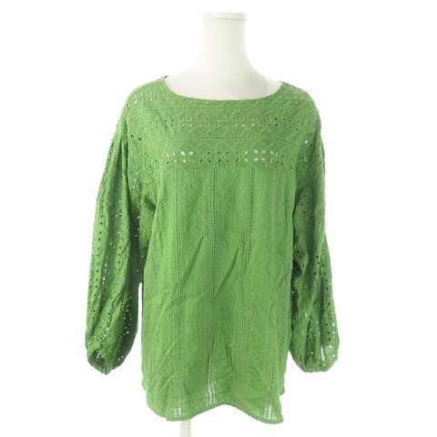 > グリーンレーベルリラクシング green label relaxing glr 総レース ブラウス カットソー ラウンドネック 長袖 カットワーク 透け感 緑