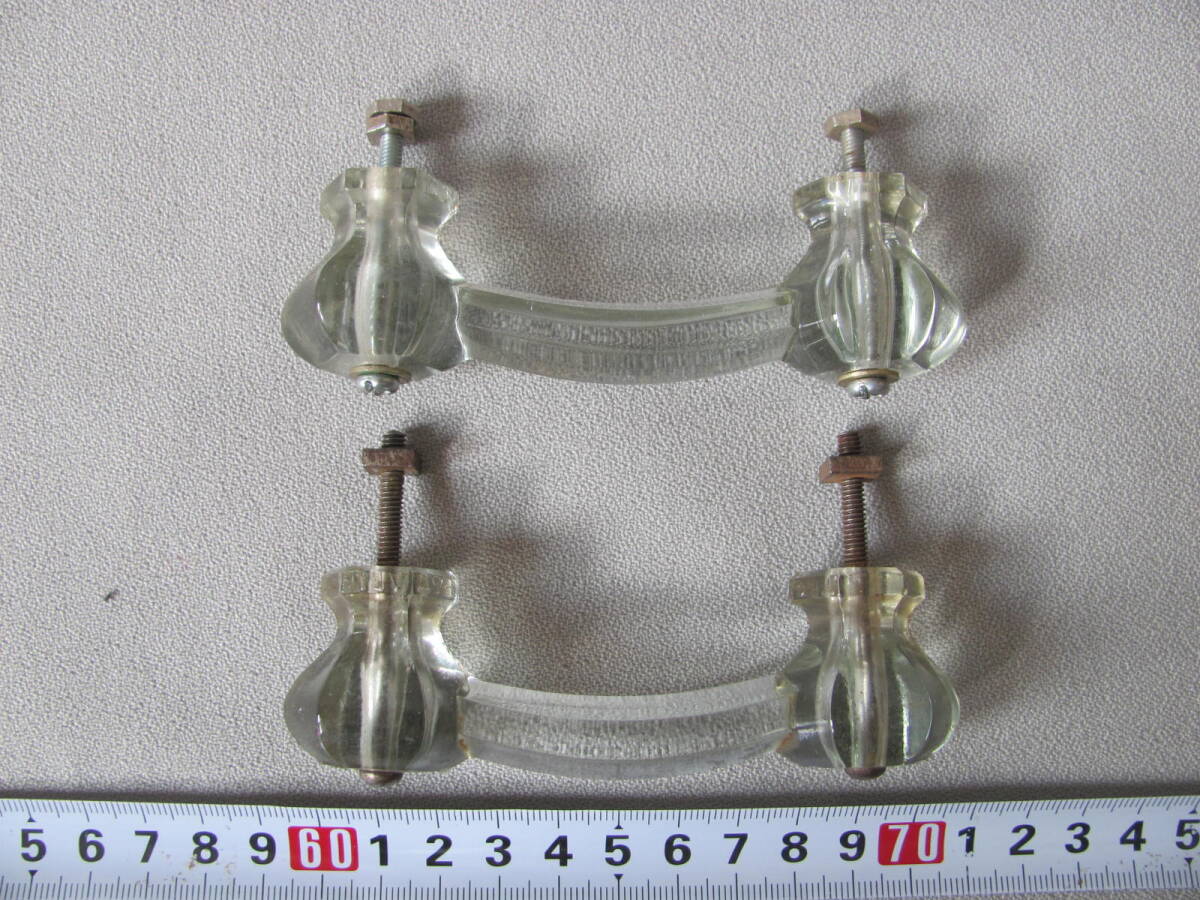 - ◆古い「ガラス製・引手、1対」アンティーク家具使用品