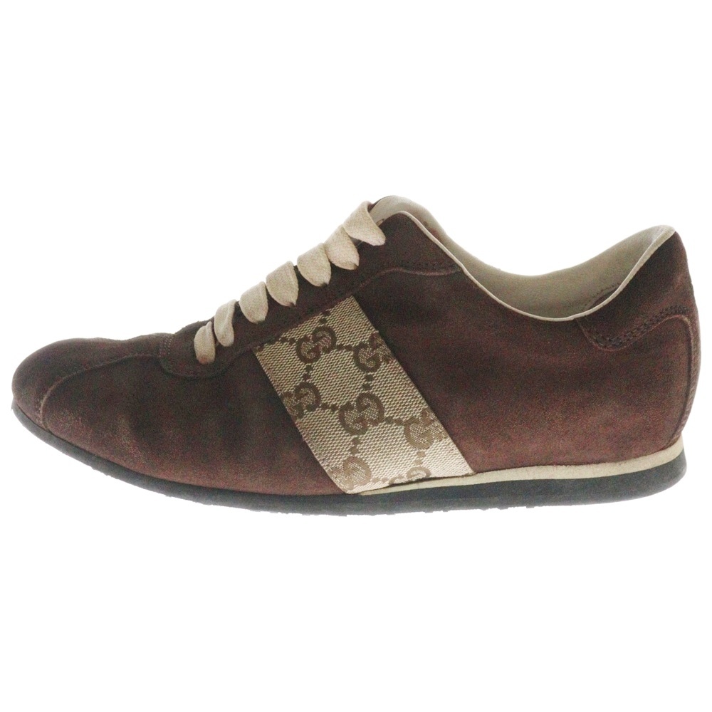 - GUCCI グッチ GGキャンバス 切り替え スウェードレザー レースアップ ローカットシューズ スニーカー ブラウン レディース 138732