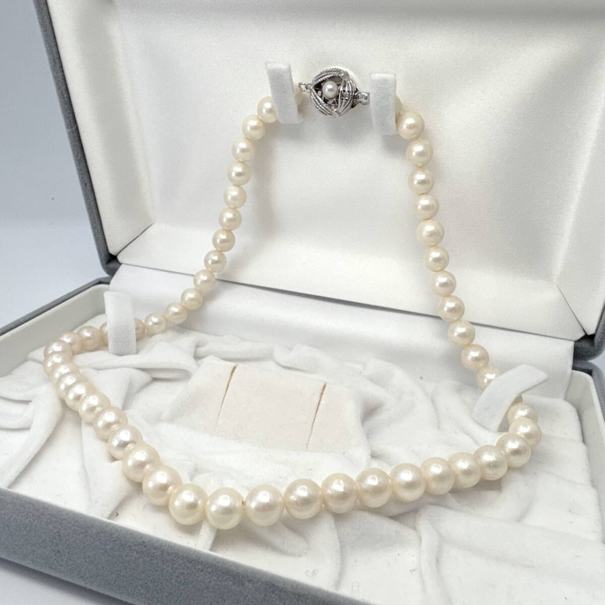 - 【テリ抜群】 アコヤ 本真珠 7.6-8.1mm ネックレス 42.5cm 36.8g SILVER刻印 ホワイト系 あこや 2S