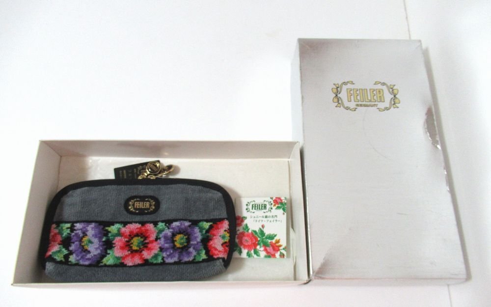 - ♪未使用/紙タグ付き!FEILER(フェイラー)長財布/ラウンドファスナー財布/ロングウォレット/シュニール織/グレー系×ブラック×お花柄