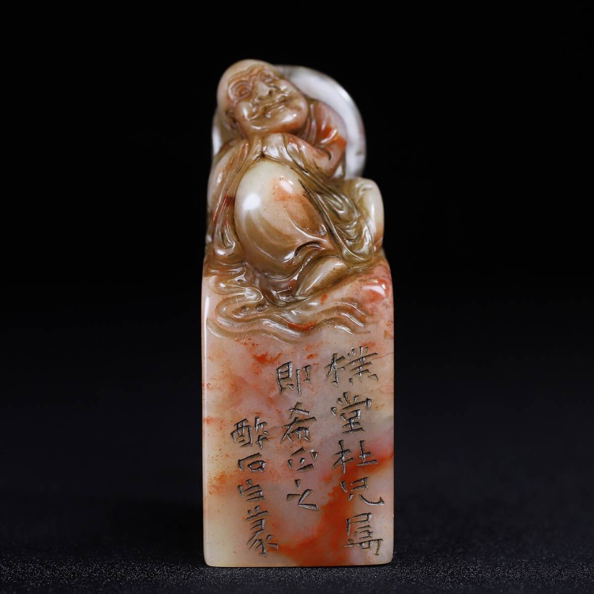 > ▽鴻▽ 寿山石 芙蓉石 細密彫 羅漢印章 印鑒 文房具 書道品 古賞物 古董品 時代物 稀少珍品 中国古玩 中国古美術
