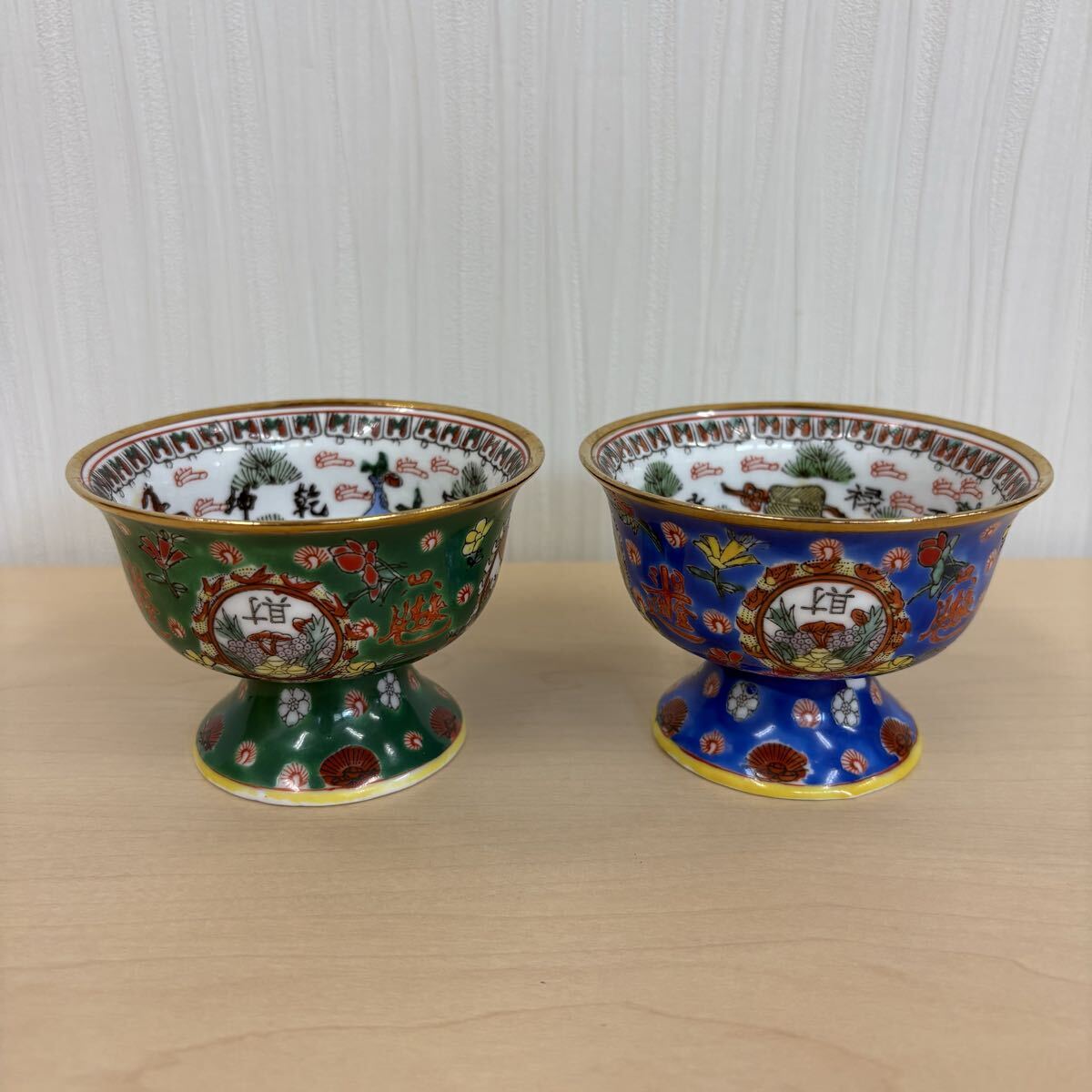- 中国茶器 乾隆御製 茶器 食器 アンティーク 2個セット 中国高脚小皿