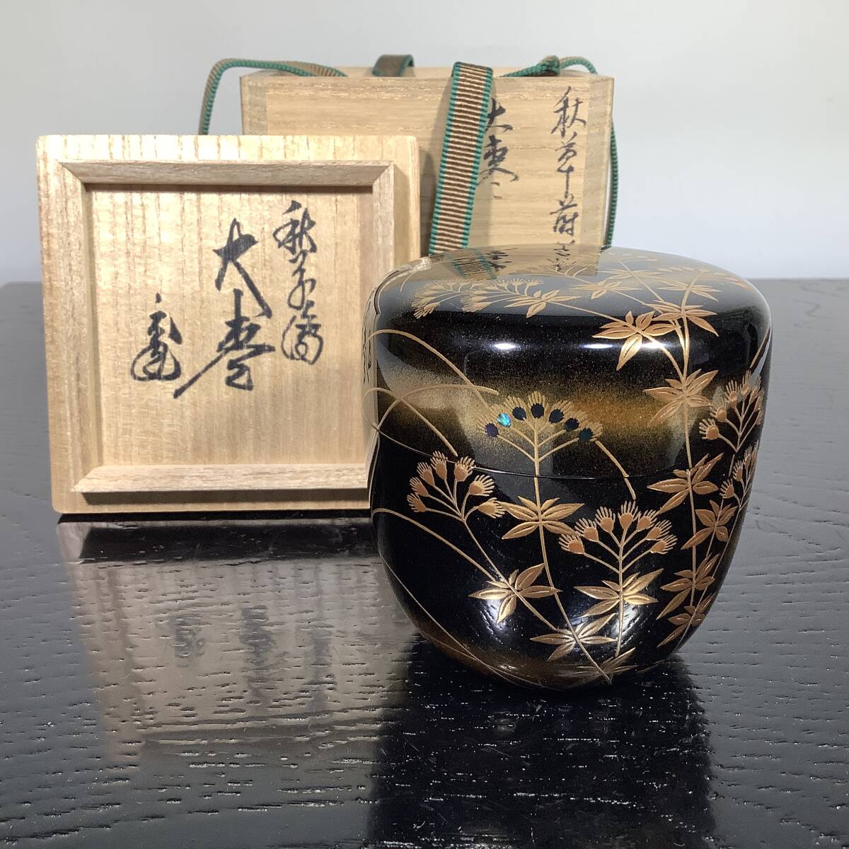 - 秋草蒔絵 大棗 裏千家 鵬雲斎 書付 茶道具