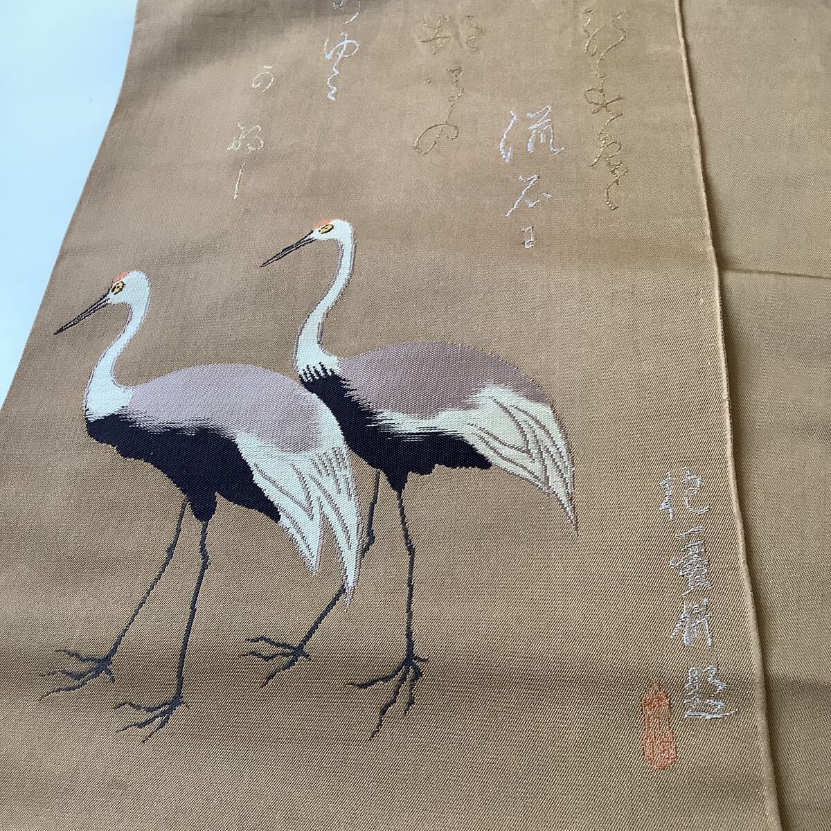 - 龍村平蔵製袋帯 日の春を流石に鶴のあゆみかな 正絹