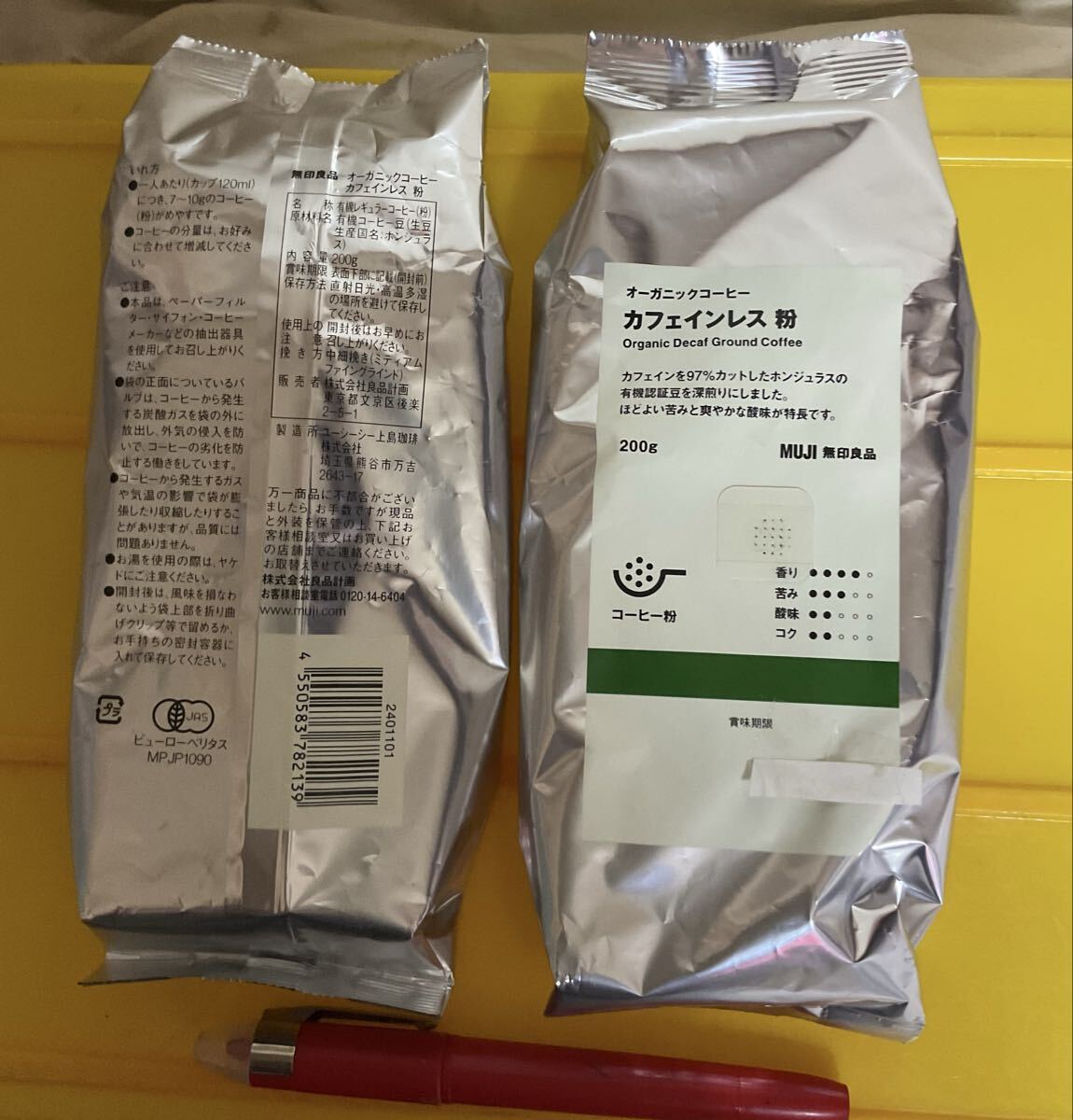 - カフェインレス珈琲 オーガニック 有機 粉 200g 2袋 コーヒー 珈琲 2026/8 在庫2 仕入除500円超10%オマケ 無印良品 送料負担別1-2出品